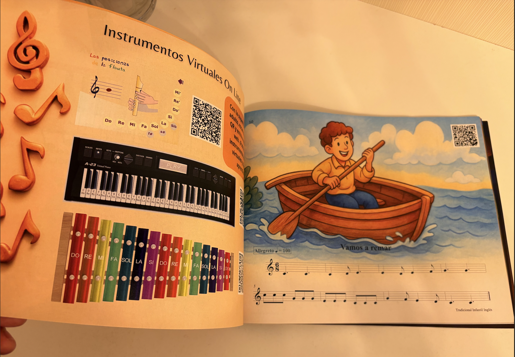 El libro incorpora códigos QR y elementos de Realidad Aumentada (R.A.), invitando a los estudiantes a interactuar con instrumentos virtuales y recursos digitales que enriquecen su experiencia. Esta integración tecnológica hace del aprendizaje un proceso más didáctico, interactivo y moderno, abriendo camino a futuras versiones con recursos basados en Inteligencia Artificial.