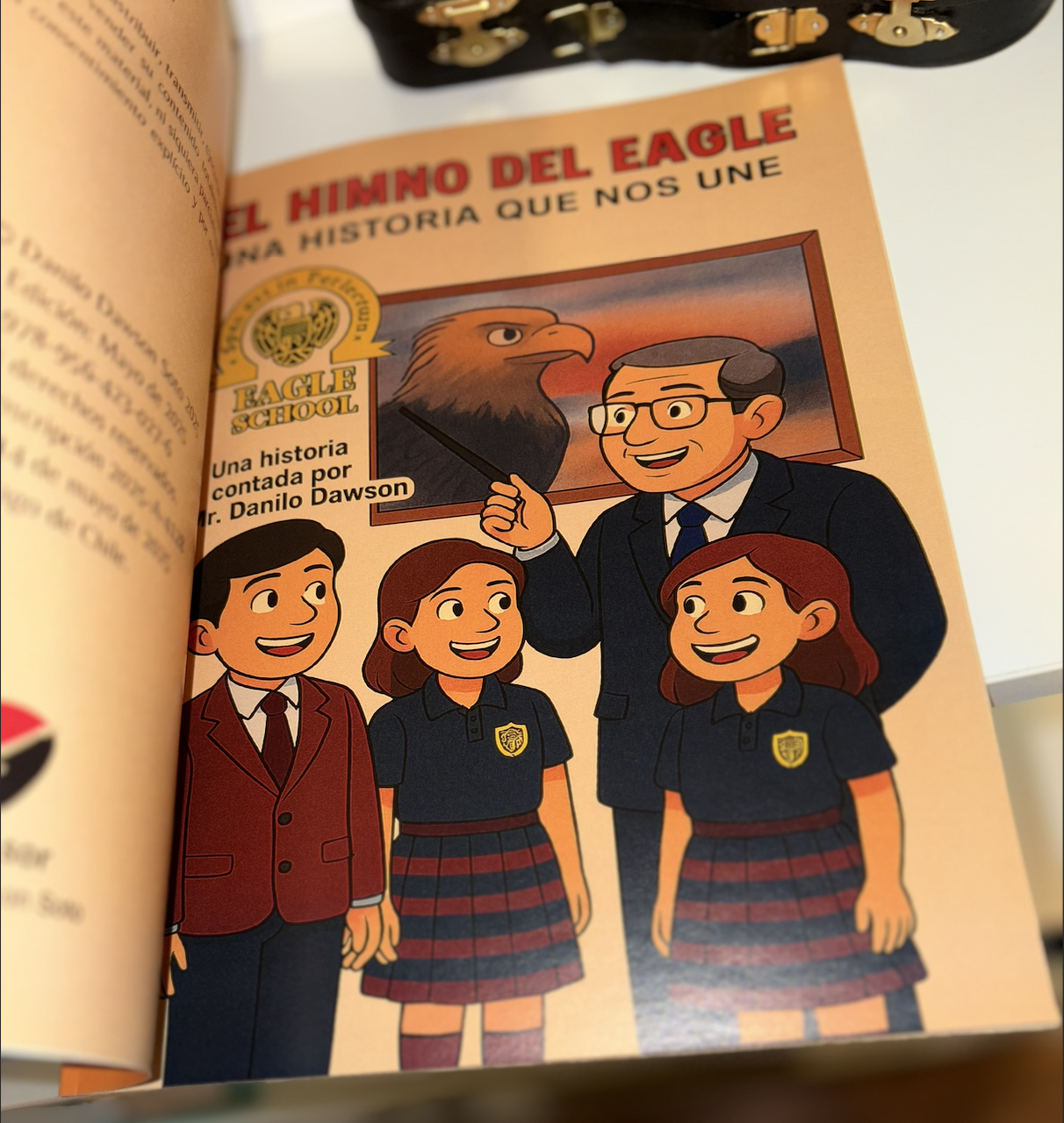 “Una Historia que Nos Une”, escrita por Danilo Dawson Soto, es una revista tipo cómic a todo color que narra de forma didáctica y emotiva los orígenes del himno institucional del colegio Eagle School. A través de ilustraciones y un lenguaje cercano, esta obra busca fortalecer el sentido de pertenencia de los estudiantes, destacando la importancia de la música como elemento identitario y comunitario. Dirigida principalmente a alumnos de enseñanza básica, la revista promueve valores como la memoria, la unidad y el orgullo escolar mediante una historia real contada desde la experiencia vivida por uno de sus protagonistas.